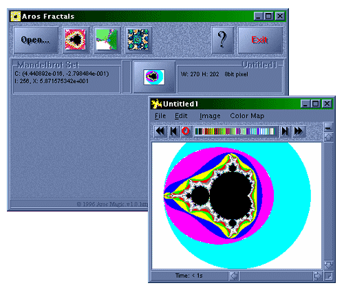 Mandel is another simple Mandelbrot set explorer that promises unlimited zooming, but with only a few options and color palettes. Images can be saved as BMP or GIF files.